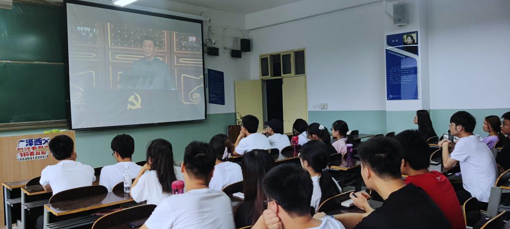 7月1日,庆祝中国共产党成立100周年大会在北京天安门广场隆重举行。beat365中文官方网站班子成员和教师、学生党员代表集中收看庆祝大会实况,其他师生通过电视、网络、手机等收听收看大会直播,认真聆听习近平总书记在庆祝中国共产党成立100周年大会上的重要讲话,一起见证中华民族的伟大复兴。