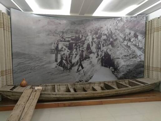 1935年10月,中央红军主力长征到达陕北后,建立了中华苏维埃人民共和国中央政府西北办事处,使陕北成为革命的中心根据地。1937年7月7日,日本帝国主义发动卢沟桥事变,企图以武力征服中国。同年9月,根据国共合作的协议,中国共产党将陕甘苏区改为陕甘宁边区。中国共产党领导的八路军总部及下辖主力115师、120师和129师四万多人的抗日队伍,在朱德总指挥率领下,在20多个不眠之夜后,即从韩城芝川渡口胜利东渡湍急的黄河,从此便展开了八路军奔赴华北前线,抗击日本侵略者的动人历史画卷。八路军东渡黄河后先后取得平型关、阳明堡大捷,打破了日寇侵略军不可战胜的神话,大大提高了人民抗战必胜的信心。斑斑锈迹的大刀、看着那早已斑驳的木船、看着老百姓送给八路军的棉衣、门板等一件件珍贵文物、一张张历史照片,带大家回顾了那段难忘的革命岁月。