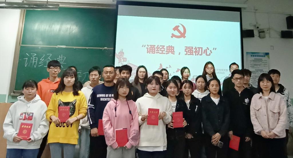 为引导学生党员知史爱国,知史爱党,知史奋进,筑牢红色思想基石、传承四史精神,推动“四史”学习落地落实,3月31日晚,beat365中文官方网站学生第一党支部和第二党支部于沣惠校区教学主楼308联合举办“诵经典,强初心”主题演讲比赛,学生第一党支部书记侯勇、学生第二党支部书记王靖晶以及两个支部党员、积极分子参加。