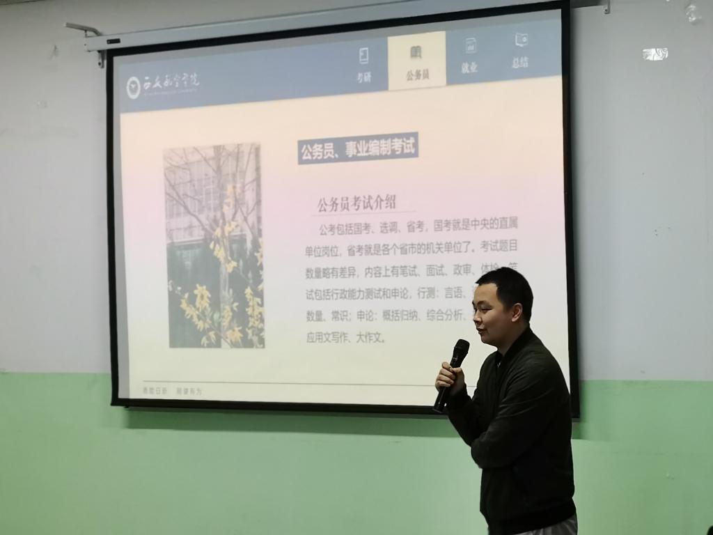 4月1日晚,beat365中文官方网站在沣惠校区教学北楼447报告厅举行了学长分享交流会,旨在为大家的学习生活提供指导和建议,帮助同学们做好学业规划。