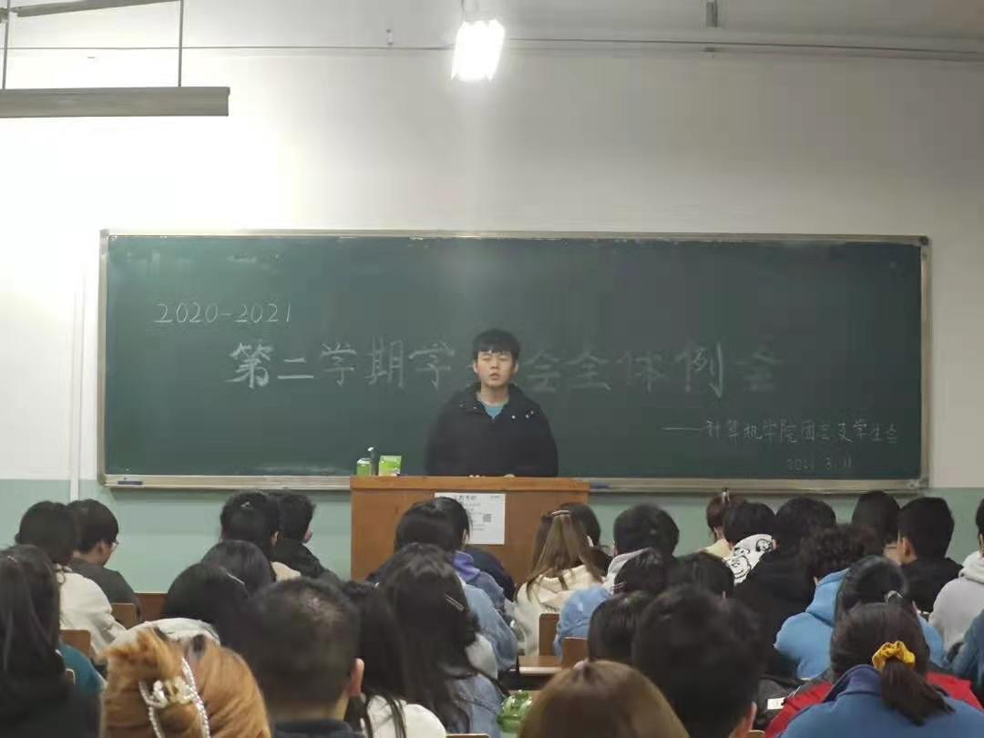 为推进新学期beat365中文官方网站团总支学生会工作,加强服务型学生会组织建设,创新活动形式,更好的服务学院师生,beat365中文官方网站于2021年3月11日晚在主教学楼402召开2020-2021第二学期学生会全体例会,团总支书记侯勇、学生管理科王靖晶老师以及全体团总支学生会成员参加。