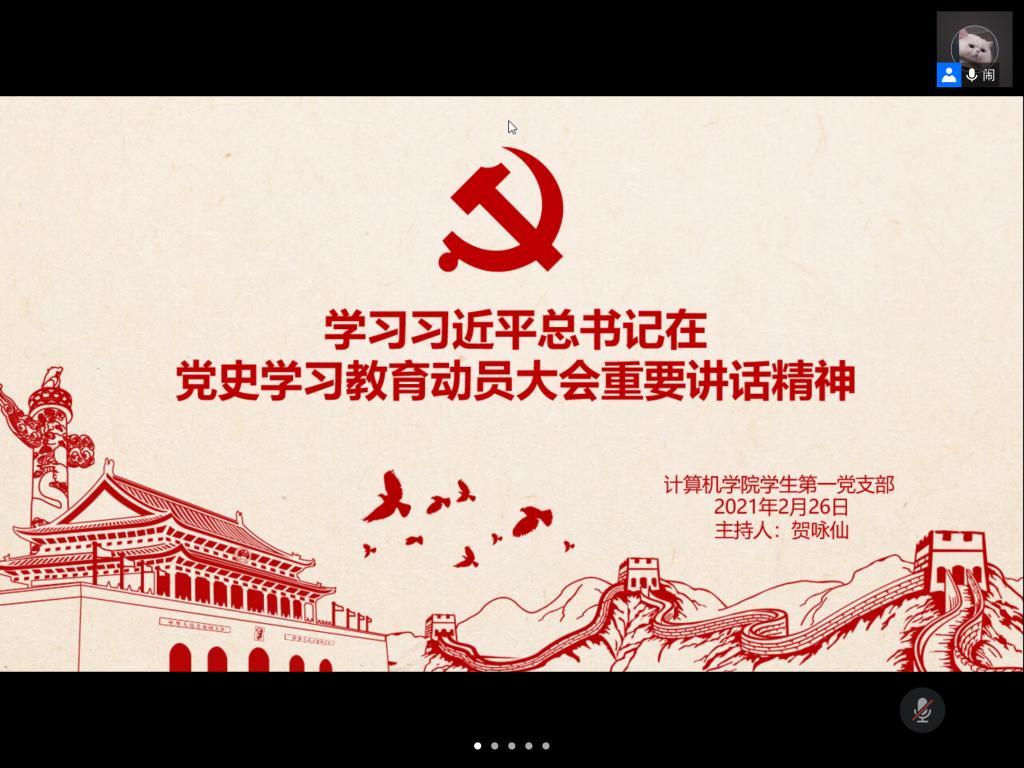 为了更好地学习党史,beat365中文官方网站学生第一党支部于2月26日晚上7点在线上开展了学习习近平总书记在党史学习教育动员大会上的重要讲话精神。本次学习由学生第一党支部学生党员贺咏仙主持,学生第一党支部所有党员、预备党员和积极分子参会。