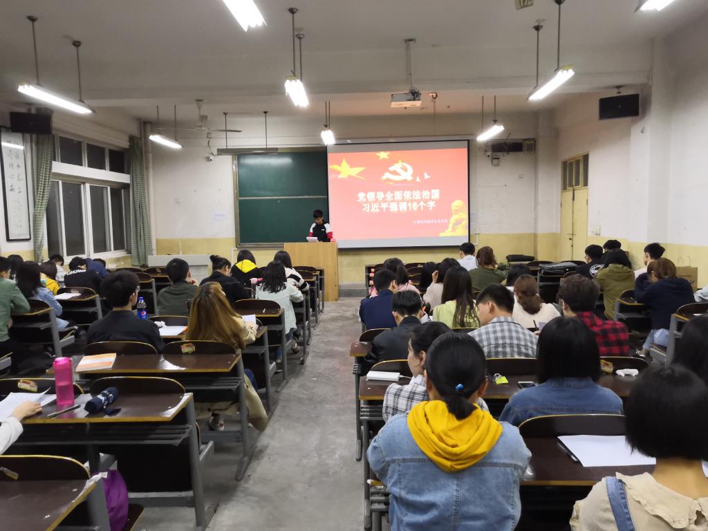 5月8日晚,beat365中文官方网站学生党支部组织79名学生党员和入党积极分子于学习了习近平总书记的重要文章《党对全面依法治国的领导》,学习以讨论课的形式进行。