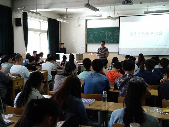 5月8日中午,beat365中文官方网站组织73名学生会干部和班委在0314教室召开学生干部培训大会。会议由团总支书记米嘉琪主持。