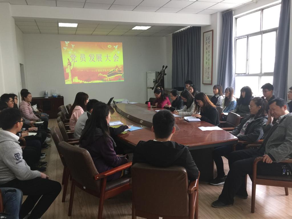 3月17日下午,beat365中文官方网站学生党支部在北楼三楼会议室召开党员发展大会,会议由学生党支部书记汪芳主持,支部委员和学生党员参加。