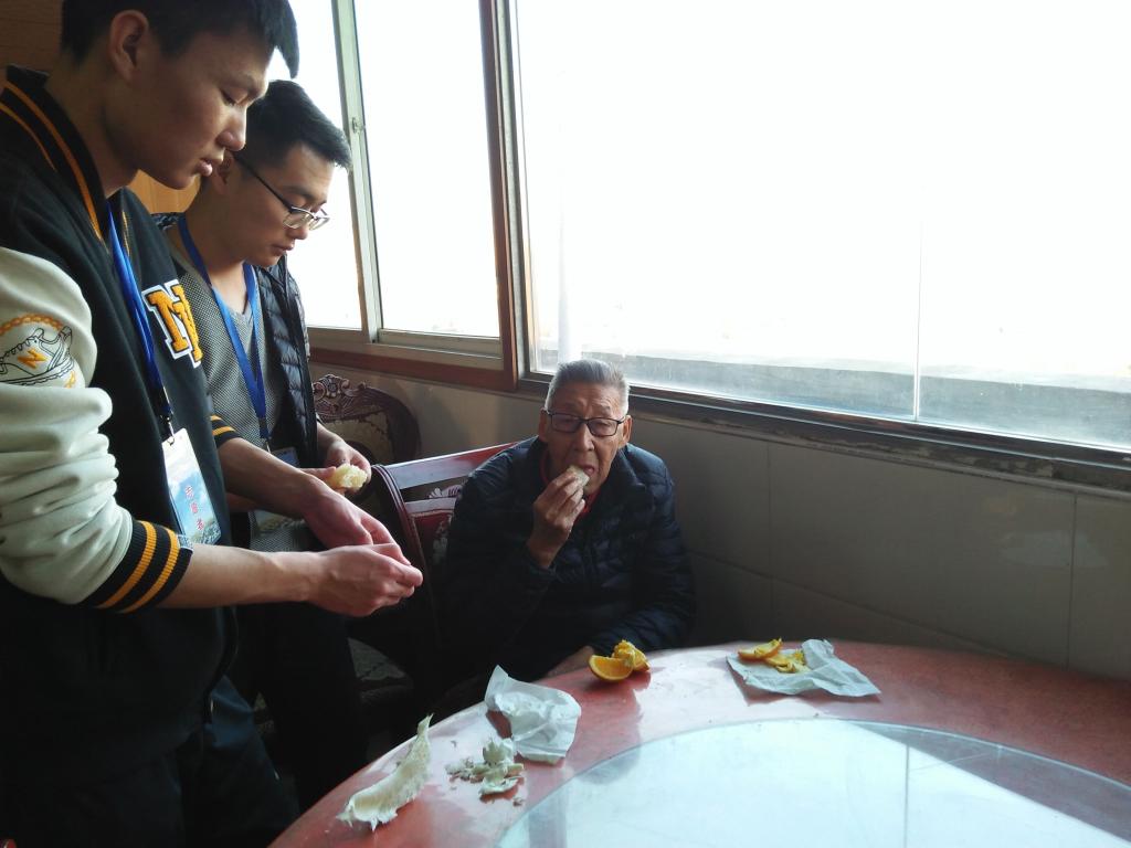 在与院长简单交接完有关工作之后,此次活动正式开始。大家分成四个小组,有的帮助老人收拾房间,陪老人下棋聊天解闷,有的帮忙清理环境,有的唱红歌、演小品、跳舞,有的帮老人按摩,在这寒冷的冬天,志愿者们为老人所做的每一件事都给敬老院增添了一份温暖。这次志愿服务在老人和志愿者的欢笑声中圆满结束。当看到老人和蔼可亲的笑脸,志愿者们也非常开心,他们用自己炽热的内心,为他人、为社会贡献了自己的力量。