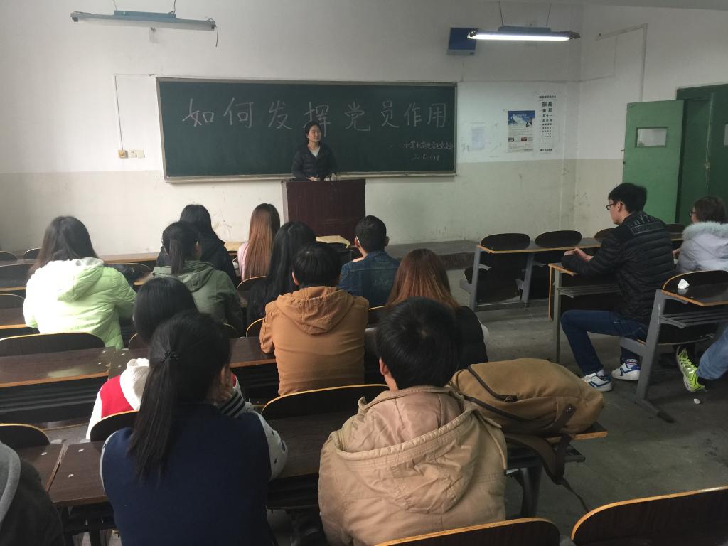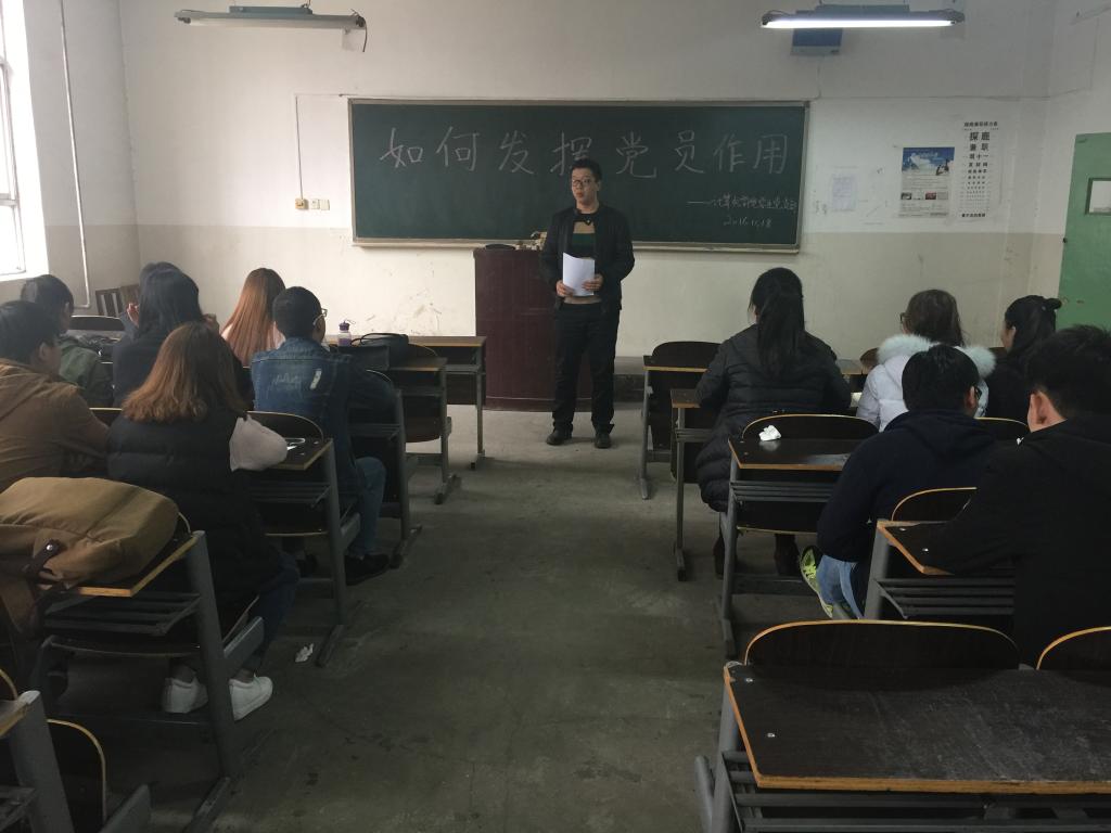 首先,米嘉琪向大家传达了《中共beat365中文官方网站委员会民主评议党员制度的实施办法》的通知,从自我评价、民主评议、组织考察、确定评议档次四个方面部署了2016年度学生党员的民主评议工作,要求全体党员在评议准备阶段认真学习《党章》和习近平总书记重要讲话,提高思想认识,端正评议态度,对自己一年来的各方面表现进行综合的检查和评价,努力做到求真务实,共同提高。接着,米嘉琪结合“两学一做”学习教育活动,就如何发挥党员作用进行讲述,希望大家认真学习领会“两学一做”精神,进一步提高党员思想觉悟;持之以恒地践行“两学一做”,把党员的先锋形象树起来;拓宽发挥渠道,推动“两学一做”取得实效,可以由党员牵头开展《党章》、准则、条例知识竞赛,激发其他同学的学习兴趣。最后,学生党员纷纷上台表达了自己的观点:践行“两学一做”并非一朝一夕,而是一个持久过程,只有党员真正接收,主动践行,才能充分发挥党员先锋模范作用,更好地服务大家。