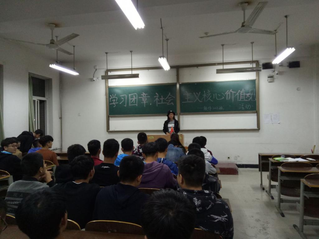 10月24日晚,beat365中文官方网站团总支组织大一新生开展学团章和社会主义核心价值观主题团会,旨在通过游戏的方式加强同学们对团章和社会主义核心价值观的认识。