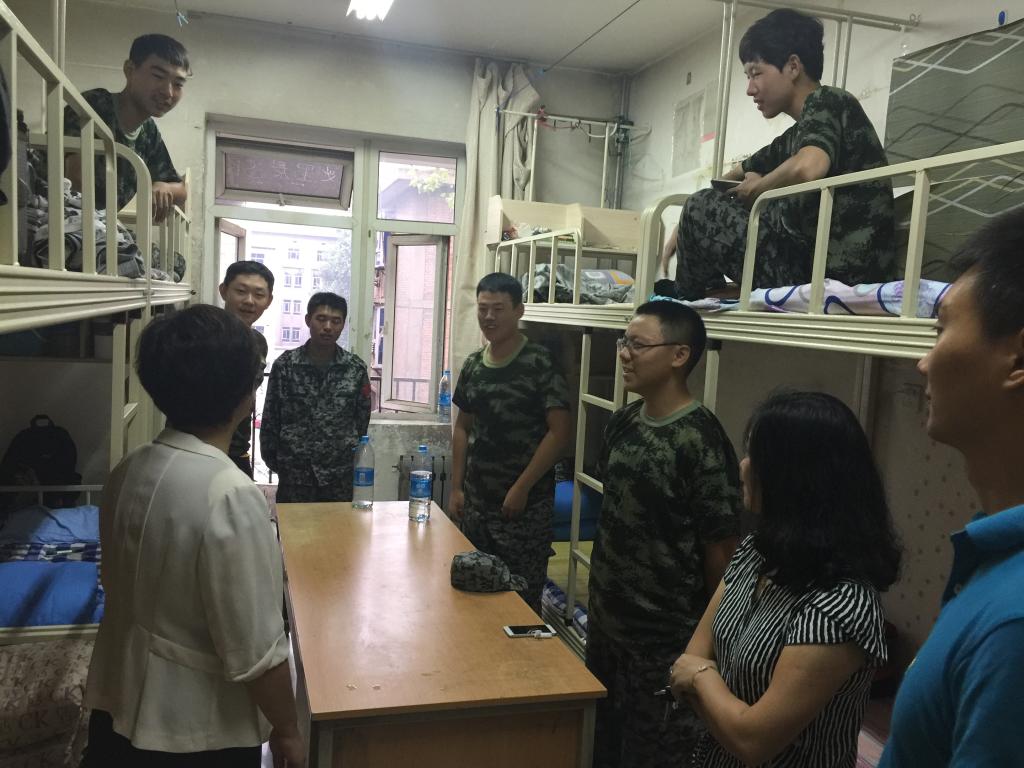 9月14日,beat365中文官方网站党总支书记刘晋云、学生管理科科长汪芳带领全体辅导员和大一班主任到学生公寓进行走访,在调查新生军训期间生活状况的同时,也给学生带来了中秋节日的问候。