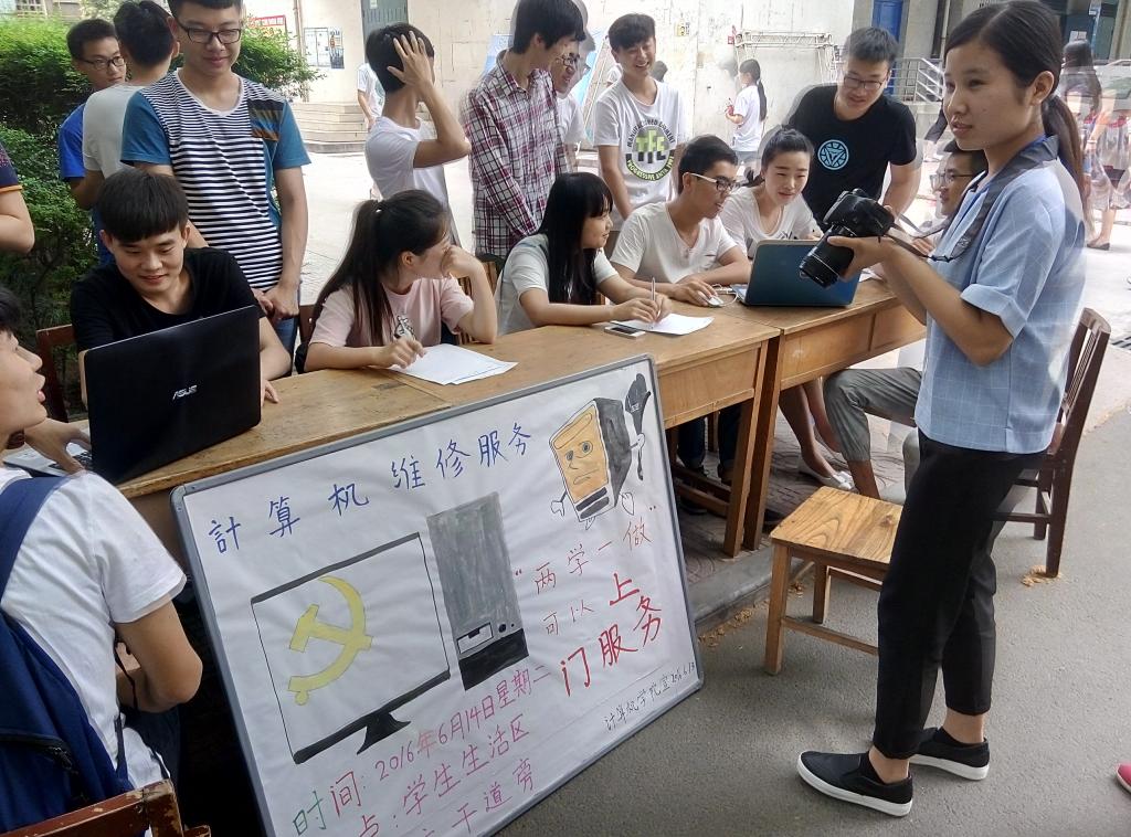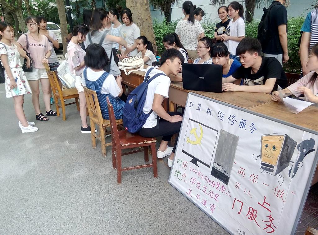 6月14日,beat365中文官方网站学生党支部组织53名预备党员和积极分子开展计算机服务站活动,主要是针对全校师生计算机方面的问题进行解答和维修。