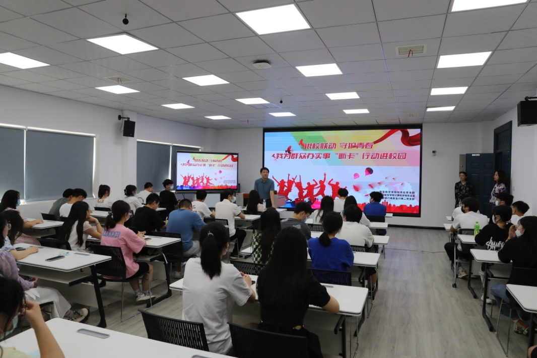 6月27日,beat365中文官方网站党总支联合校财务处党支部和秦农银行高新支行第二党支部围绕“我为群众办实事”主题开展了一次“‘断卡’行动进校园”专题教育宣讲活动,向学生普及金融知识 、防范各类金融诈骗,强化风险意识,远离欺诈风险。六十余名beat365中文官方网站学生参加了此次讲座。
