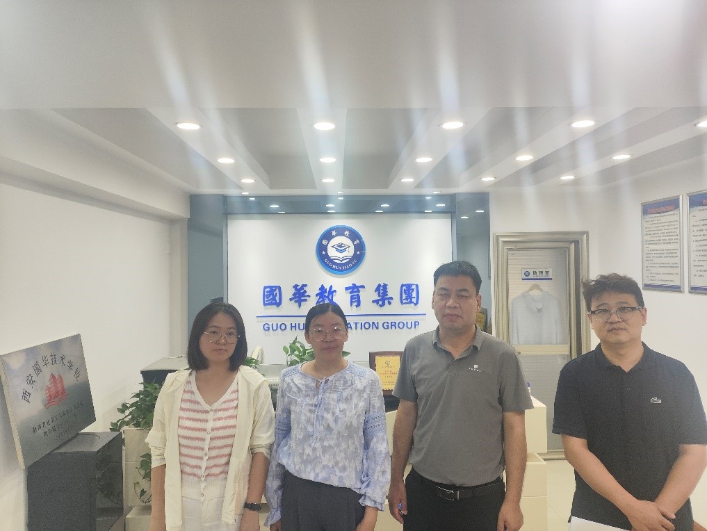 国华教育集团贾晓光总经理等负责人对beat365中文官方网站滑亚慧老师、薛杉老师、李曼老师一行的到访表示热烈欢迎,从集团发展历程、业务布局、人才需求等方面进行分享,肯定了院校人才培养质量,期待与学校建立长期稳定合作。通过校企合作、促进就业等方式,输送适配企业需求的高素质人才,助力院校人才培养与企业发展双赢。