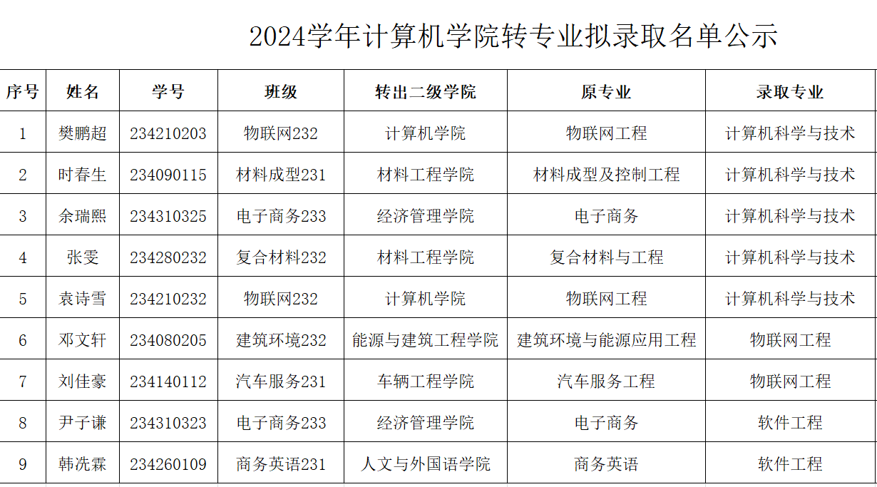 根据转专业文件相关要求及综合考核,对2024学年beat365中文官方网站转专业拟录取名单进行公示,公示期三天,如有异议,请电话至029-84252366.