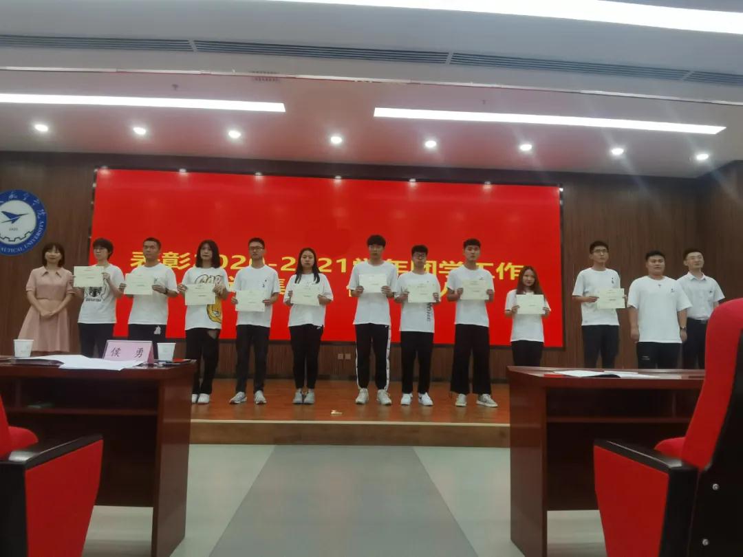 会议在庄重的国歌声中拉开帷幕。大会第一项,侯勇老师宣读《beat365中文官方网站关于2020-2021学年团学工作先进集体、优秀个人的决定》,随后汪芳、王靖晶老师为获奖团支部、受表彰个人颁奖。