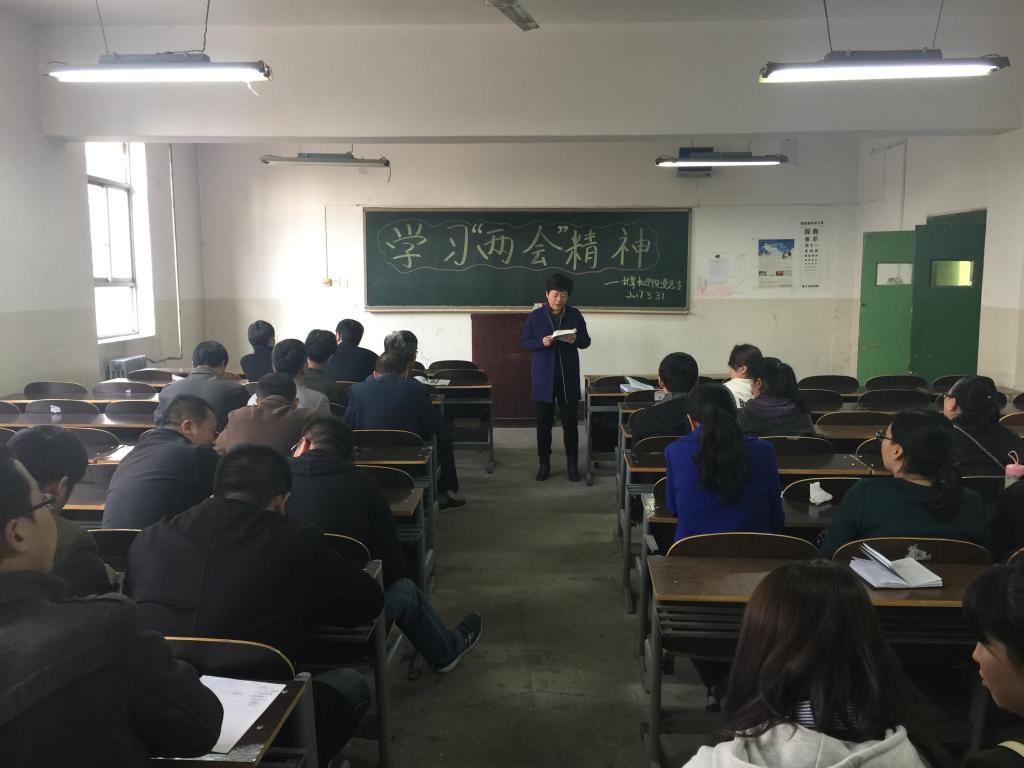 为认真贯彻两会精神,提高我院教职工的政治素养,beat365中文官方网站党总支于3月31日下午在北233教室组织全体教职工学习“两会”精神。会议由党总支书记刘晋云主持。