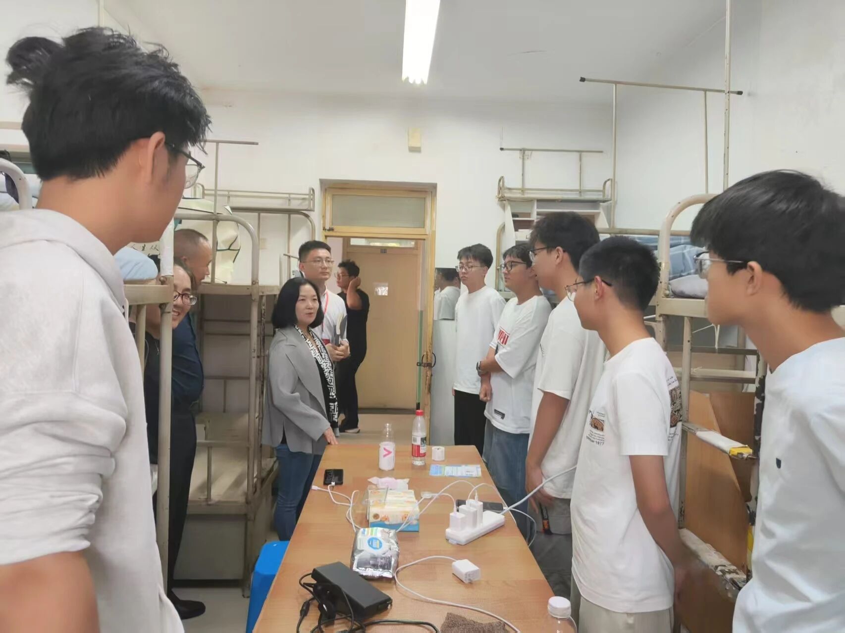 9月7日清晨,新生报到工作正式启动。新生辅导员和志愿者分工协作推进迎新工作,学院领导班子在现场耐心解答新生及家长关于报到手续、专业培养的疑问。志愿者同步协助搬运行李,温馨提供爱心服务,让初入校园的新生及家长切实感受到家一般的温暖。下午,学院党总支副书记汪芳带领新生辅导员、班主任走访学生宿舍,与学生面对面亲切交流,为初入校园的学子们送去学院的温暖关怀和真挚问候。